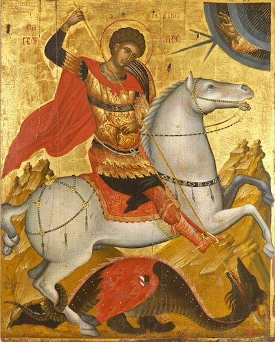 Personnifiant l'idéal chevaleresque, saint Georges est représenté à cheval
